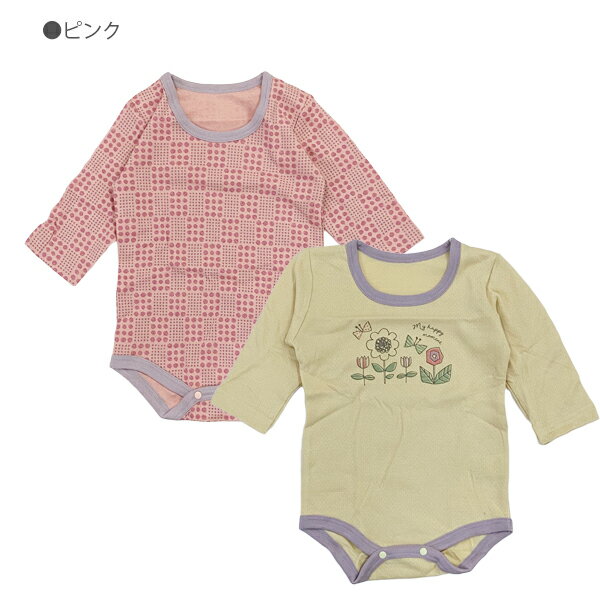 長袖ボディスーツ 2枚組 あったか素材 エアーニット 股下はスナップ止め、着替えやおむつ替えも楽チン。