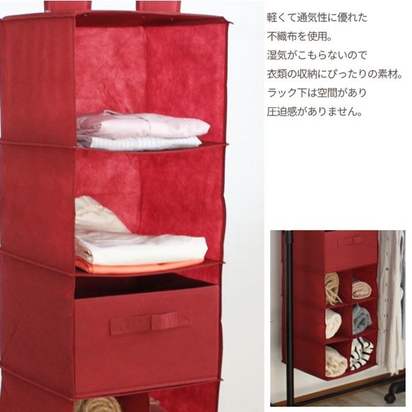■サイズ・色違い・関連商品■6段 ベージュ■6段 レッド■6段 アイボリー■6段 ダークブラウン■9段 ベージュ[当ページ]■9段 レッド■9段 アイボリー■9段 ダークブラウン関連商品の検索結果一覧はこちら■商品内容クローゼットはハンガーラック等を有効活用できる吊り下げタイプの収納ラック。
