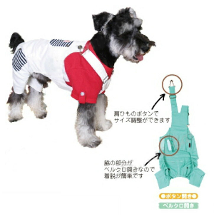 小型犬 服 ボーダーポケットオーバーオール つなぎ オールインワン 5号 6号 中型犬 ドッグウェア